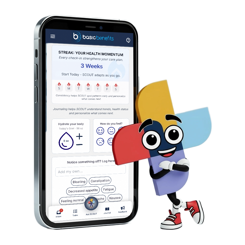 SCOUT is an AI-powered assistant built into the Basic Benefits Wellness Program. You can ask it questions about meals, fitness, motivation, budgeting, parenting, travel, home life, daily tasks, and more. It provides you with practical ideas and next steps, so you don’t have to search for answers or figure things out on your own.
